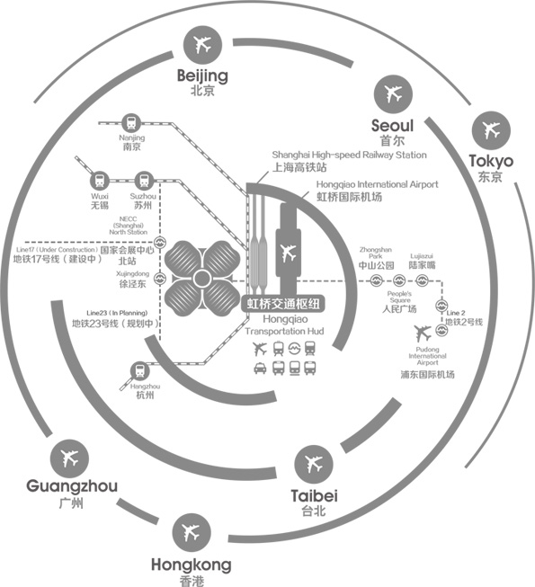 上海新国际博览中心(SNIEC)位于中国上海的心脏地区——浦东。展馆周边聚集有浦东嘉里城、证大喜马拉雅中心、永达大厦、紫竹大厦、“博览汇”广场、2006商业街、联洋广场、大拇指广场等国际化大型综合商业项目,涵盖酒店、餐饮、艺术中心、银行、购物、娱乐、休闲等配套设置。上海新国际博览中心交通十分便利,地铁2号线、7号线、16号线、磁悬浮均可到达。